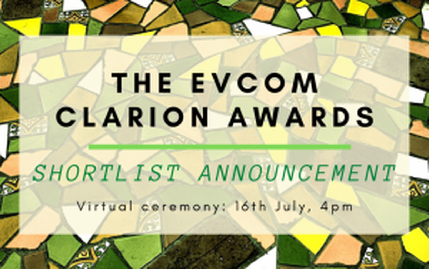 The winning entries will be announced at the EVCOM Clarion Awards Virtual ceremony on 16****th July at 4pm. You can find out more about the ceremony and buy tickets here.