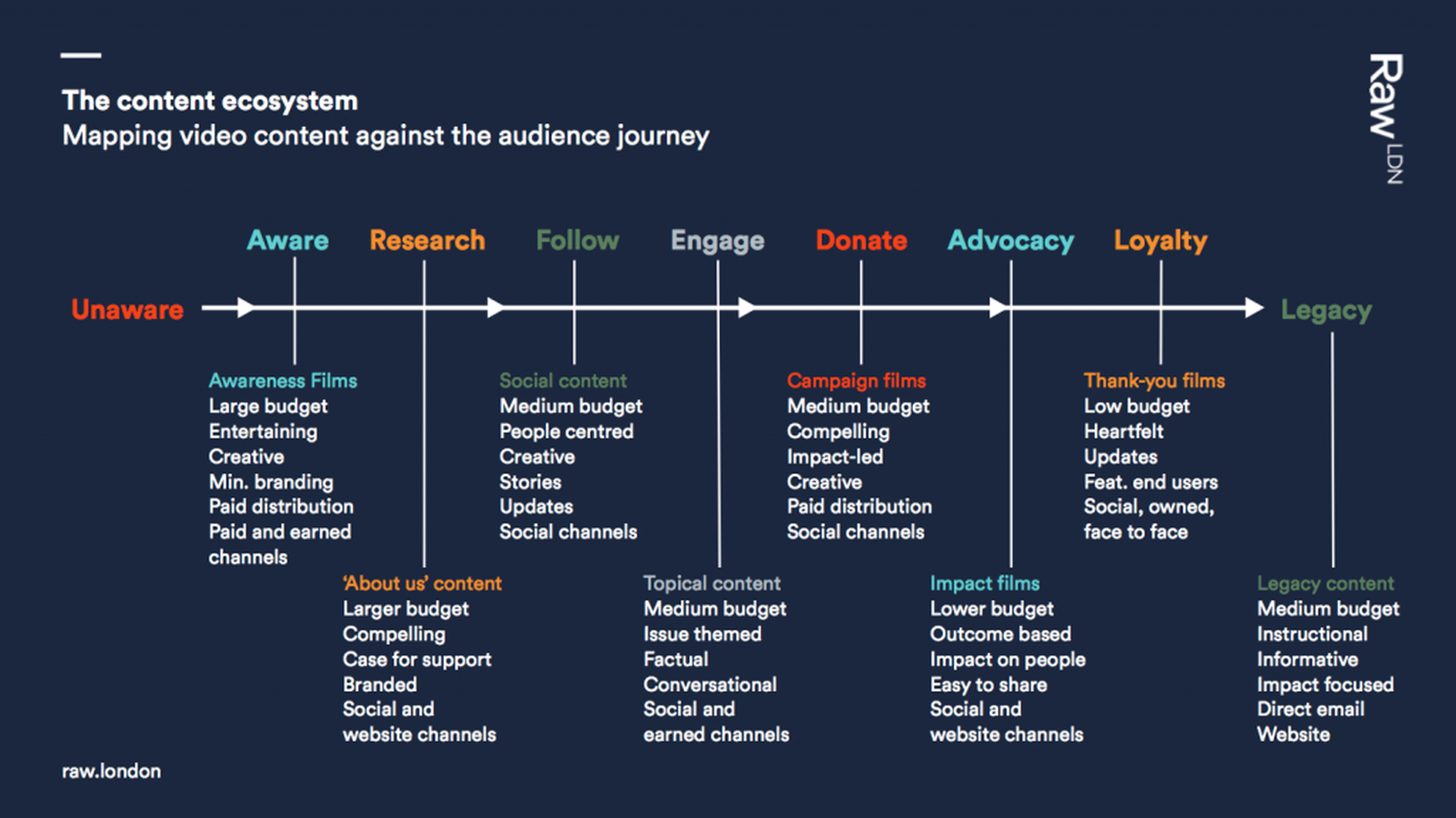 Inspired by the laws of nature, our very own Ryan Wilkins also gave a quick run down of the content ecosystem, sharing a useful cheat sheet for identifying how video can play a very different (but equally important) role at each stage of your audience journey. See the below screen grab or download the pdf here: