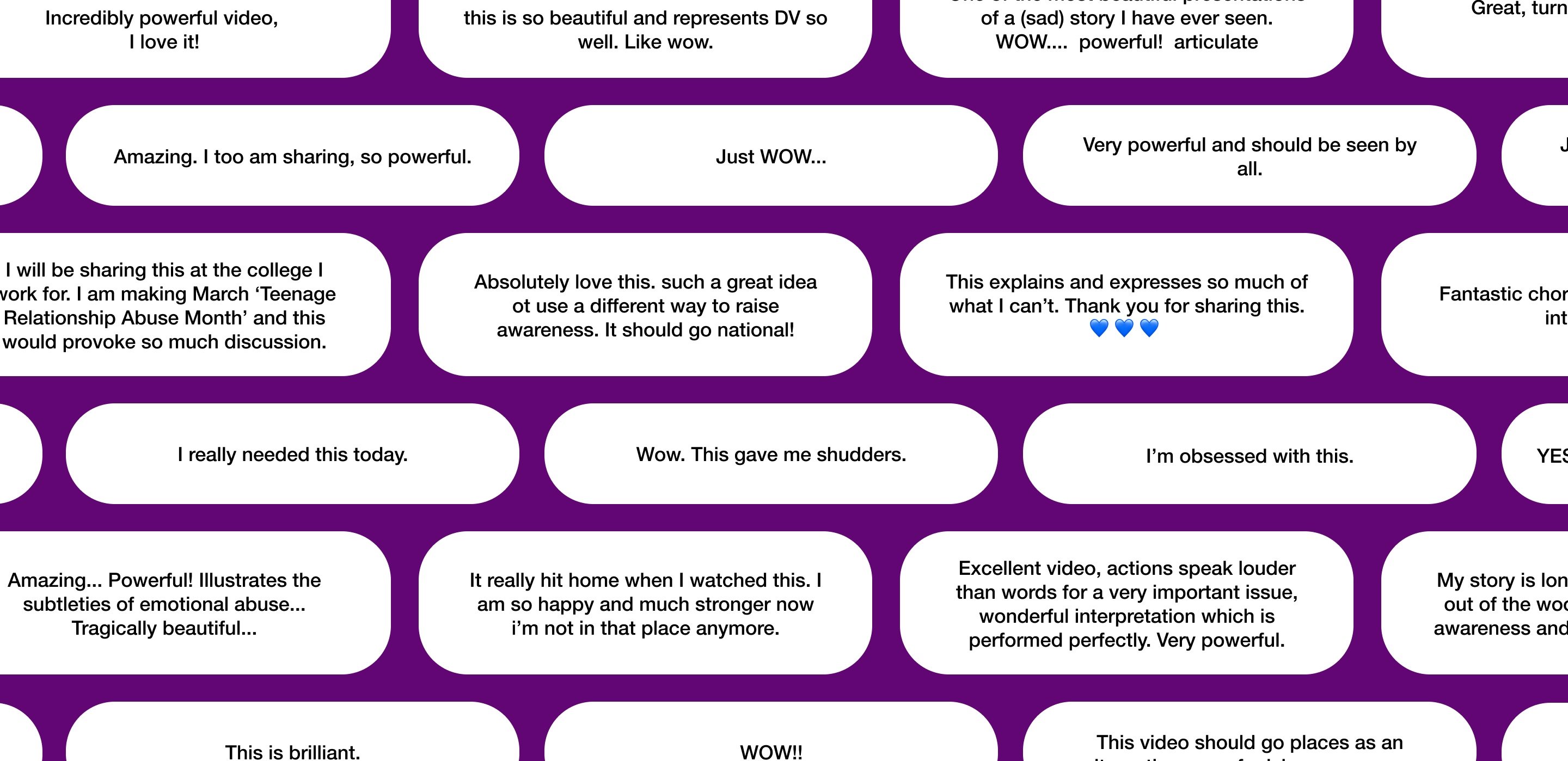 Other domestic abuse charities shared the message, and NDAS were approached by teachers so that the film can be used as part of Domestic Abuse Awareness Month in schools. As a result, the film has since been shown in every single school in Northumberland.